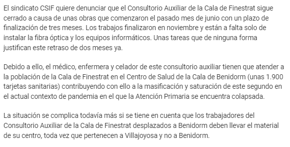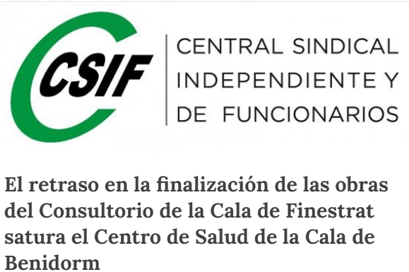 EL RETRASO DE LAS OBRAS DEL CONSULTORIO DE LA CALA DE FINESTRAT SATURA EL CENTRO DE SALUD DE BENIDORM