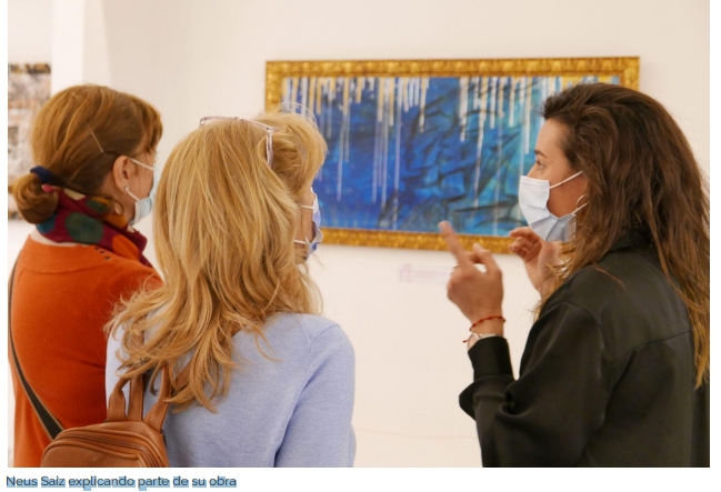 Neus Saiz, pintora autodidacta desde muy joven, viene de exponer en el Certamen de Jóvenes y Creadores de Benidorm y en esta ocasión pudo exhibir sus más de 30 cuadros al público, con la oportunidad de explicar su estilo (abstracto/tribal) y su técnica. Gracias a esta interacción