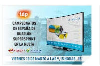 Mañana viernes 18 de marzo a las 9,15 horas en Teledeporte de TVE se emitirá un reportaje de 15 minutos sobre los “Campeonatos de España de Duatlón Supersprint”, celebrados en La Nucía el pasado fin de semana. Una vez emitido se podrá consultar en televisión a la carta de Televisión Española, desde cualquier dispositivo.