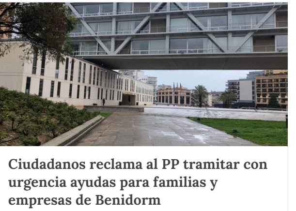 Ciudadanos reclama al PP tramitar con urgencias ayudas para familias y empresas de Benidorm