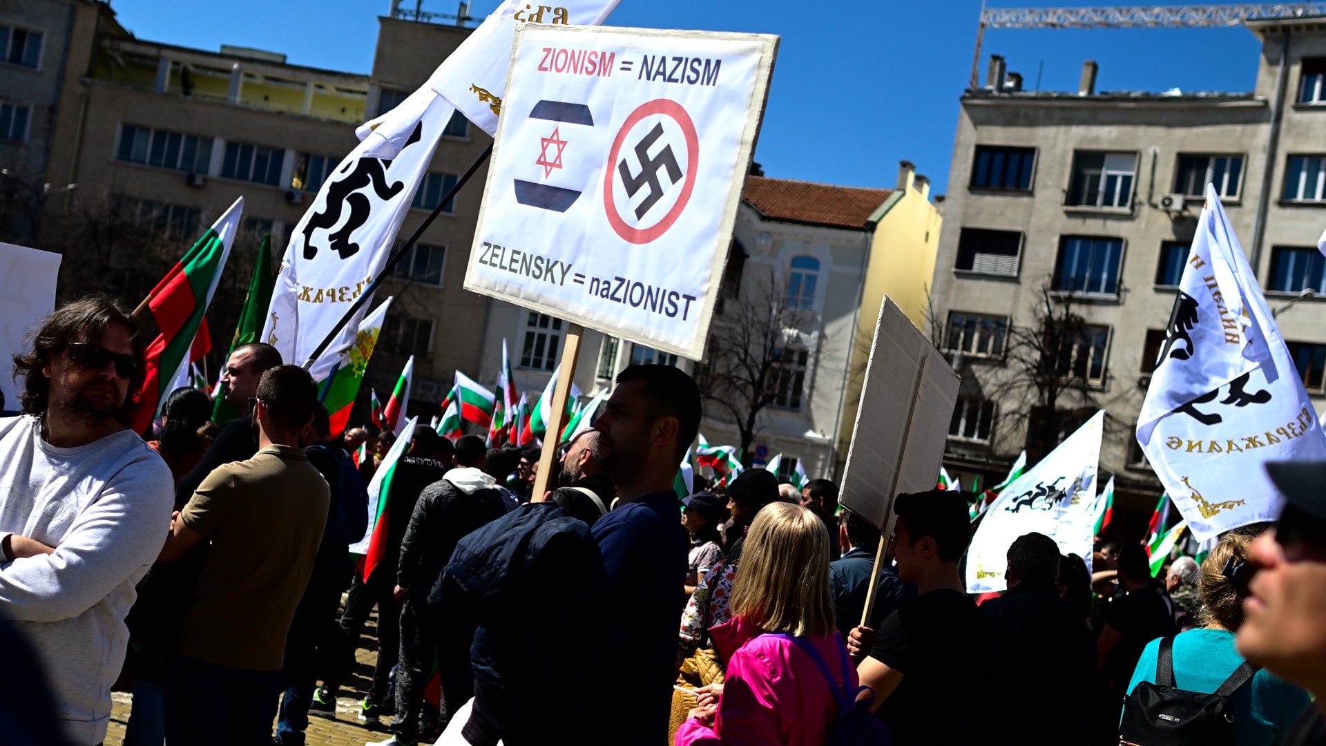 - 13:40Manifestantes prorrusos se manifiestan delante del parlamento búlgaro en Sofía. Rechazan que Bulgaria, como miembro de la OTAN, envíe armas a Ucrania. FOTO: EFE/EPA/VASSIL DONEV