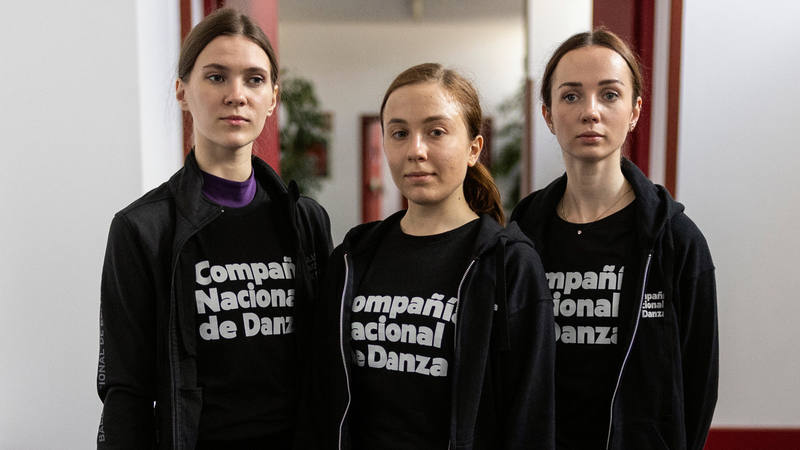 - 20:43Del Ballet de Ucrania a los ensayos en Madrid: la huida de seis bailarinas para sobrevivir y no perder su identida. La Compañía Nacional de Danza acoge a seis bailarinas del Ballet de la Ópera Nacional de Ucrania. “Vivimos en dos realidades: la tranquila vida de aquí y la que hemos dejado y sufren nuestros familiares». Por ESTEBAN RAMÓN.
