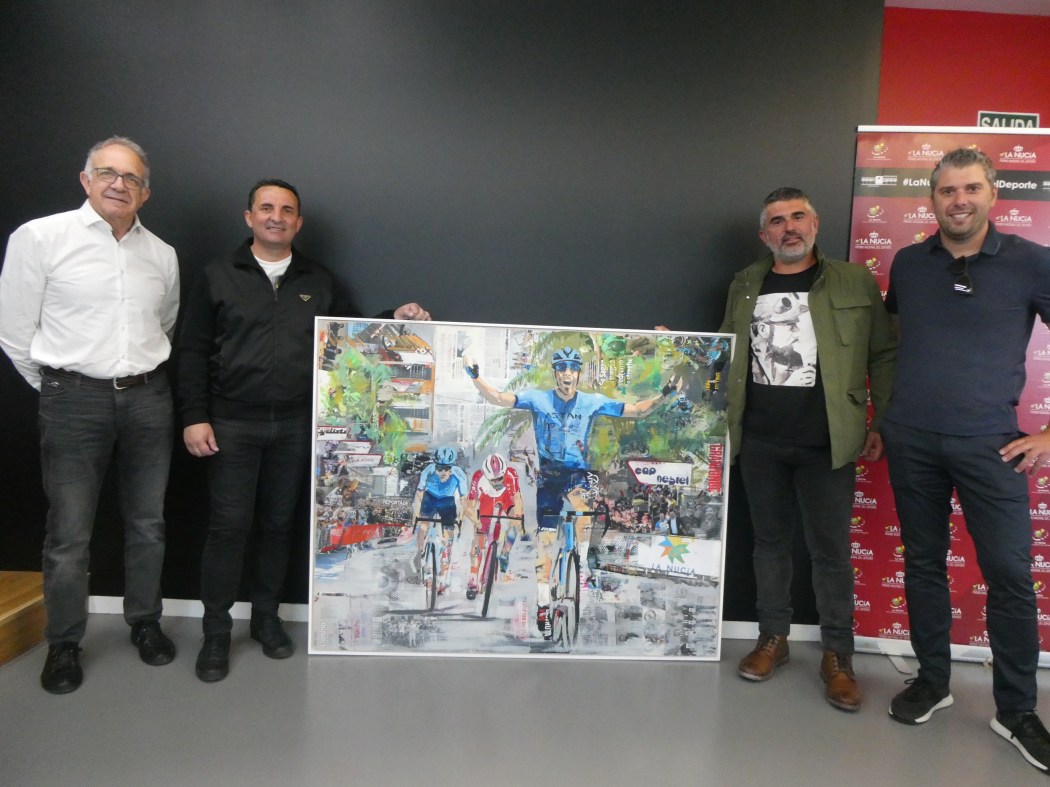 En el acto de entrega del cuadro además de José Luís López Cerrón, presidente de Real Federación Española de Ciclismo (RFEC) y Bernabé Cano, alcalde de La Nucía estuvieron presentes Pascual Momparler, seleccionador español de Ciclismo y Pepe Alvado, gerente del Hotel Cap Negret