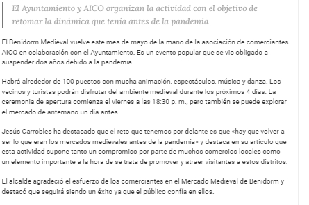 De todos modos se ve venir una nueva asociación para el Comercio y la Vivienda que nos da esperanza de que este sector empresarial , el mas importante local, recupere su prestigio de antaño, ¡digamos antes de la «pandemia» y ponga el sector en pie de guerra sin necesidad de tener que hacer, junto con el ayuntamiento, «ferias y mercado de tipo medieval.