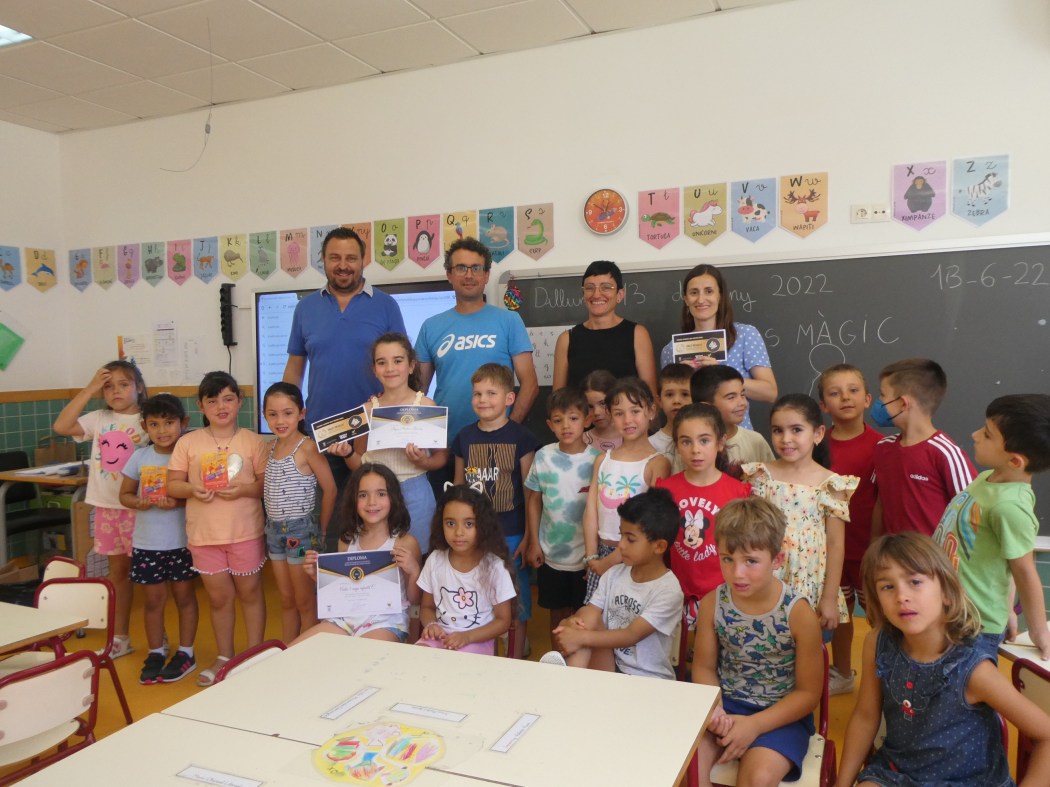 La entrega se ha realizado en la clase de 5 Anys C del Colegio Público Sant Rafael con la presencia del alumnado de esta clase de Infantil y la alumna de Pepa Pastor (4ºA) Noelia Pérez, directora del centro y los tutores Xavi Frau y Véronica Grau y el concejal Sergio Villalba.