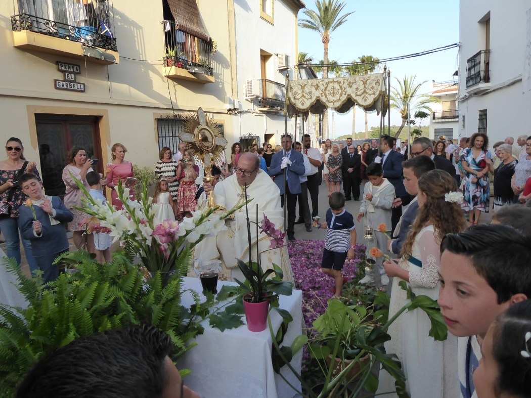 En cada una de ellas la procesión realizará una parada y se procederá al rezo en conmemoración de la Festividad del Corpus Cristi, que tiene como protagonistas a los niños y niñas que han comulgado este año.