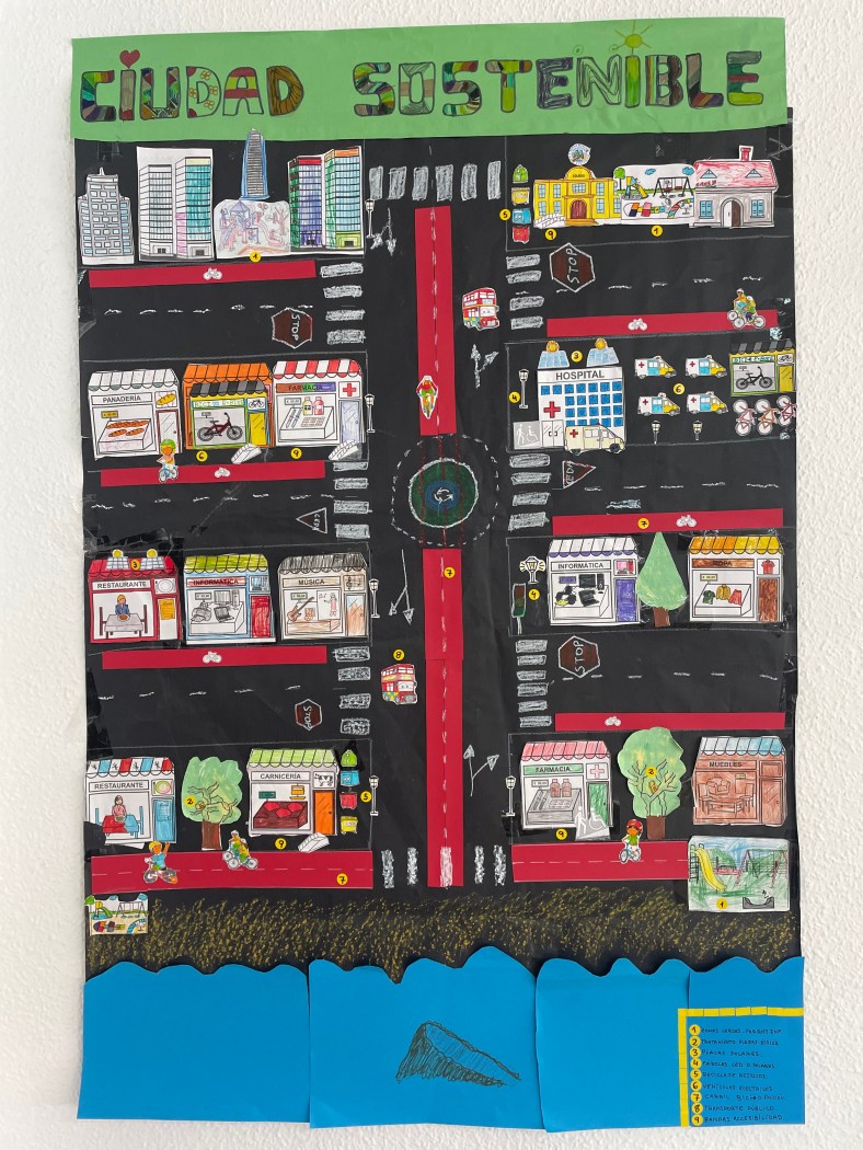 Tras la votación popular, la clase de 2ºA ha ganado el concurso con su mural “Ciudad Sostenible”