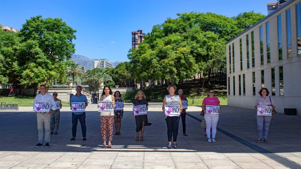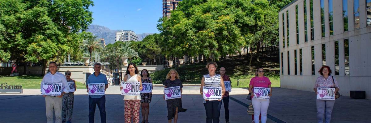 Benidorm ha expresado hoy su repulsa y condena ante el último crimen machista cometido en Madrid el pasado 20 de junio y lo ha hecho guardando un minuto de silencio ante la puerta principal del Ayuntamiento, con la concejal de Igualdad, Ángela Zaragozí, a la cabeza junto a miembros de la corporación municipal y algunos vecinos.