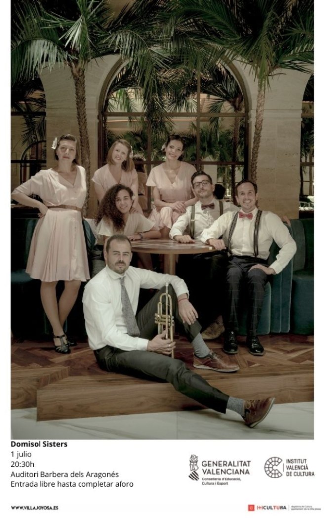La concejalía de Cultura del Ayuntamiento de la Vila Joiosa acerca este viernes, 1 de julio, a las 20.30 horas en el Auditorio de la Barbera dels Aragonés a la banda ‘Dómisol Sisters’. Con su música y gran puesta, la banda conseguirá contagiar su energía y hacer retroceder al público asistente a la era dorada del swing.