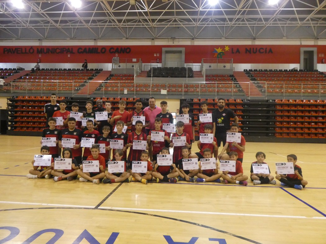 Esta mañana ha finalizado el Campus Sporting Fútbol Sala La Nucía con la entrega de diplomas. 35 niños del fútbol de entre 6 y 14 años han participado en esta edición. Además de la práctica deportiva de este deporte, los chicos han podido disfrutar de juegos, sesiones de baño en la piscina y partidos de otros deportes como padbol, fútbol playa, pádel…