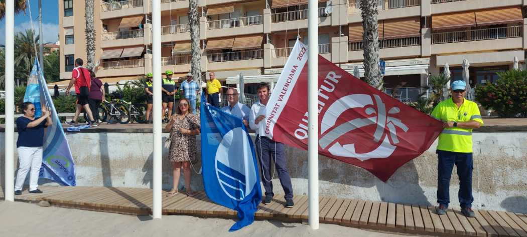 Las playas de la Vila Joiosa ya ondean sus Banderas Azules y Banderas Qualitur de Turisme CV por las que ha sido reconocida la excelencia de sus parajes y la calidad de sus aguas un año más.