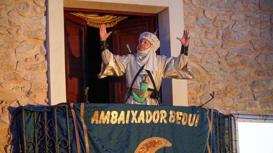Tras un vídeo que recordó la trayectoria del embajador a lo largo de sus 50 años al frente del cargo festero, Juan Vicente Llinares, ataviado con su traje de embajador beduino, recitó desde el balcón de la Casa Museo de la Barbera dels Aragonés parte de la embajada beduina para gozo del público asistente; quien al finalizar su intervención, arropó con una sincera ovación al embajador para agradecerle su constancia, arte y servicio a las fiestas de Moros y Cristianos de la Vila Joiosa, declaradas de Interés Turístico Internacional.