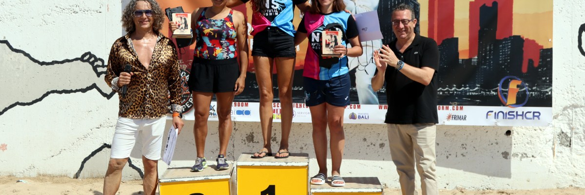 La primera plaza en categoría femenina ha sido para Ángela Cerdán, del CN Master Natural Swim Petrer, que ha cruzado la meta con un tiempo de 47 minutos y 20 segundos. Al igual que en categoría masculina, el segundo cajón del podio también lo ha conquistado una deportista local, Eliana Sotelo, del CD Aguaviva Benidorm, que ha completado el recorrido en 49 minutos y 12 segundos. Muy cerca, con apenas seis segundos de diferencia, también ha alcanzado el arco de llegada Esther Puche, del CN Master Natural Swim de Petrer.