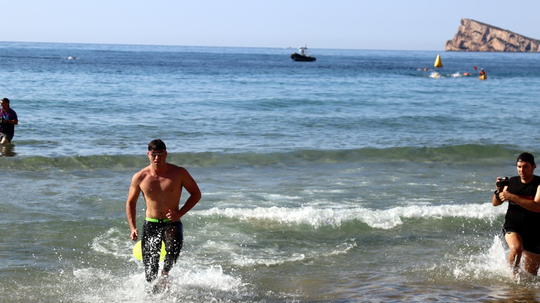 Miguel Bou vuelve a ser el más rápido en cubrir los algo más de 3 kilómetros de la prueba en aguas de la playa de Levante