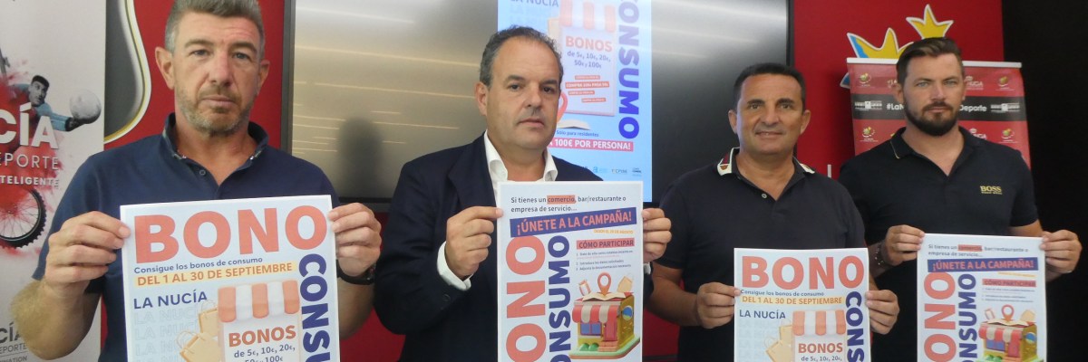 El mes de septiembre (del 1 al 30) se realizará la campaña de “Bonos Consumo” de La Nucía, gracias a la subvención de 100.947 euros de la Diputación de Alicante. Esta ayuda directa de la Diputación se destinará a dinamizar la actividad económica del municipio e incentivar las compras en el comercio local. Los bonos consumo se destinan directamente a la población empadronada, que obtendrá el 50% de descuento en todos y cada uno de los consumos que realicen durante el mes de septiembre en los establecimientos adheridos a la campaña.