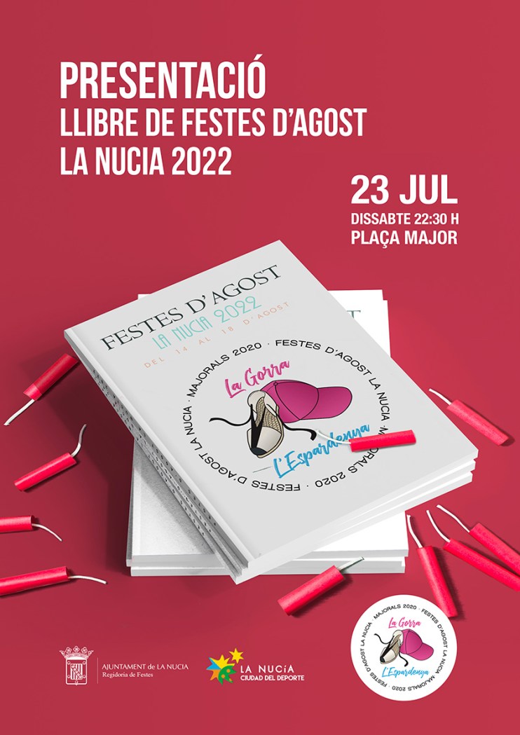 Este acto de la “Presentació del Llibre de Festes d’Agost 2022” está organizado por els Majorals 2020- Gorra-Espardenya y la concejalía de Fiestas del Ayuntamiento de La Nucía. Este acto será presentado por Jero Arranz y Olga Morcillo, majorals de la Gorra-Espardenya.