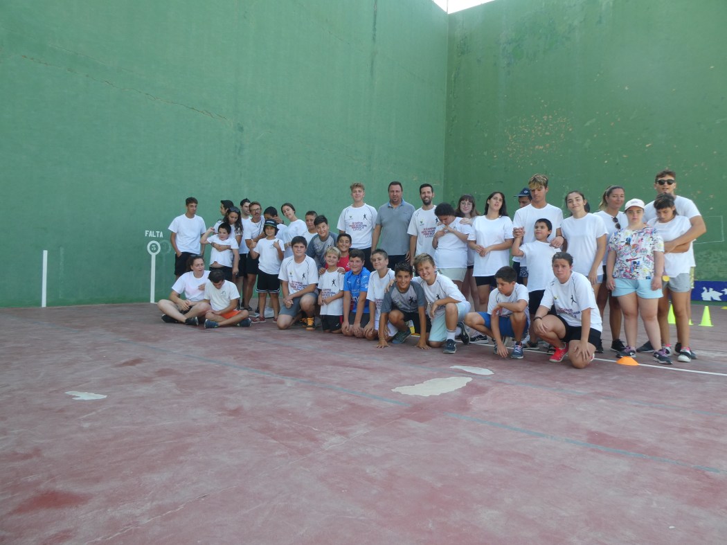 Los 13 alumnos del III Campus de Pilota Valenciana y sus dos monitores compartieron actividad en el Frontón de la Ciutat Espostiva Camilo Cano con los 13 alumn@s y monitores del X Campus Integra. Practicaron diferentes actividades de juego con pelotas de tamaño medio, para mejorar la psicomotricidad de todo el alumnado. Al final de la actividad practicaron “raspall” con los alumnos de Pilota Valenciana como monitores. La experiencia fue muy positiva a pesar de ser la primera vez que se realizaba. Un año más la interacción del alumnado del X Campus Integra con otros campus y escuelas deportivas está siendo muy motivadora para todas las partes.