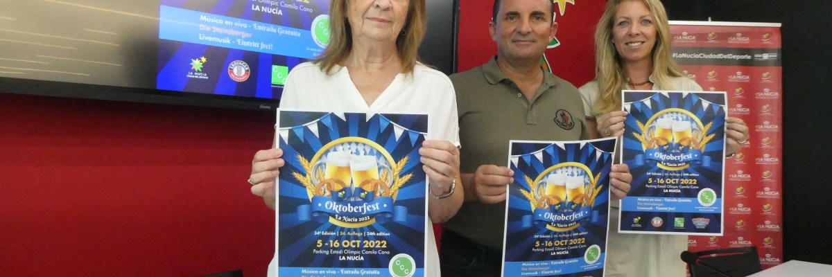 La Oktoberfest se desarrollará durante doce días, del 5 al 16 de octubre, en el parking del Estadi Olímpic Camilo Cano. Para ello se montará una gran carpa, donde todos los asistentes podrán disfrutar de una auténtica “Fiesta de la Cerveza” al estilo bávaro. Además de la típica cerveza alemana se podrá degustar de la gastronomía típica alemana como el “Codillo”, “Salchicas”, “Chucrut”…etc. La animación correrá a cargo de grupos de música folklóricos alemanes, que vendrán exprofeso a actuar durante esos días en La Nucía. La entrada será libre y gratuita. El horario previsto de la “Oktoberfest” será entre semana desde las 18 horas hasta las doce y media de la noche. Los días festivos y los domingos estarán abiertos también por la mañana y hasta la una de la madrugada.