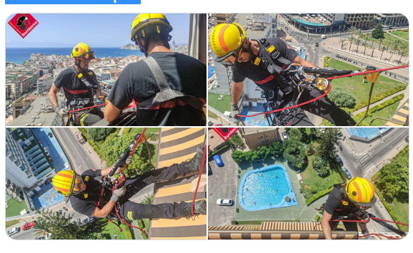 Intervención ayer a media mañana en Benidorm, al tener que acceder a una vivienda con una maniobra de rápel desde una planta 17 a la 16 👲💪, en la que se había caído una señora de avanzada edad, le deseamos pronta recuperación #siempreatulado 112! 👲💪💪👏 #bomberos #cpba