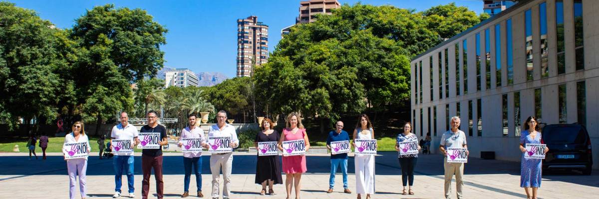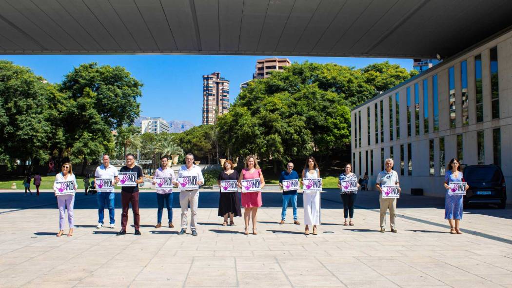 A las 12.00 h, mediodía, en la Plaza de Sus Majestades los Reyes de España, representantes de los tres grupos municipales con el alcalde, Toni Pérez, y la concejal de Igualdad, Ángela Zaragozí, en cabeza, se concentraban en respetuoso silencio para mostrar, en nombre de todos los benidormenses, su más firme rechazo a esta lacra social que ha acabado, en lo que llevamos de 2022, con la vida de 26 mujeres y ha dejado huérfanos a 19 menores de edad.