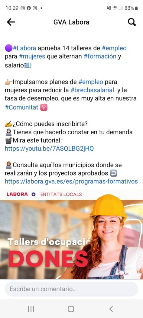 – El Grupo Municipal Socialista ha denunciado que el Ayuntamiento de Benidorm ha perdido la concesión de una ayuda de 251.354 euros de la Generalitat Valenciana para la realización de un taller de empleo para mujeres por no presentar propuesta alguna. La Generalitat Valenciana ha concedido ayudas por dicho importe a municipios como Torrevieja, L’Alfàs del Pi y La Nucía, pero no a Benidorm porque el equipo de Gobierno del PP no presentó solicitud alguna. Los talleres, que alternan formación con posterior acreditación certificada y un salario, conllevan la contratación de diez mujeres con el fin de reducir la brecha salarial y la tasa de desempleo durante el periodo de un año.