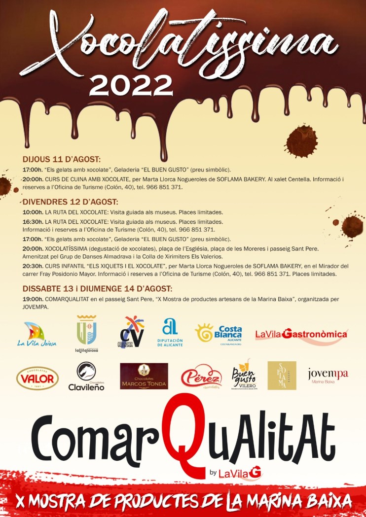 Para finalizar, el sábado 13 y domingo 14 de agosto a partir de las 19:00 horas, tendrá lugar la ‘X Mostra de productes artesans de la Marina Baixa’ bajo el sello de ComarQualitat by La Vila Gastronómica en el ‘passeig Sant Pere’ de la Vila Joiosa, que pondrá punto y final a la Xocolatíssima de este 2022.
