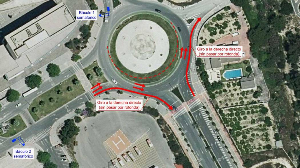 El motivo de esta actuación es el próximo inicio de las obras de soterramiento de la avenida Beniardá que provocará que buena parte del tráfico que se desvíe acceda a la ciudad a través de este punto. El concejal de Movilidad, José Ramón González de Zárate, ha explicado la necesidad de actuar en esta intersección debido a que “esta rotonda, por sus características, requiere diariamente de una vigilancia especial, que ahora deberá ser reforzada”. El edil ha recordado que la rotonda regula el acceso y salida a los juzgados, la entrada y salida al complejo escolar del Salt de l’Aigua y la entrada y salida de urgencias del Parque Comarcal de Bomberos.