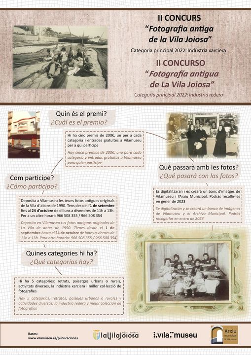 La categoría principal de esta 2ª edición es la industria redera y quienes deseen participar podrán depositar en el museo vilero las fotografías a concurso, anteriores a 1990, hasta el 24 de octubre