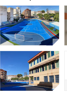 Las obras para mejorar las condiciones de los colegios de Infantil y Primaria, dieron inicio el pasado mes de noviembre con la retirada del antiguo pavimento exterior de los patios de ambos centros educativos para dar paso a la nueva pavimentación, de material menos abrasivo, y el repintado de las pistas deportivas con un nuevo diseño en tonalidades azules. Los trabajos en la zona exterior de los centros también han instalado más zonas de sombra en los patios, dotado de nuevos juegos y material deportivo, y construido un nuevo almacén exterior para guardar accesorios de psicomotricidad, material de educación física y otros juegos infantiles.