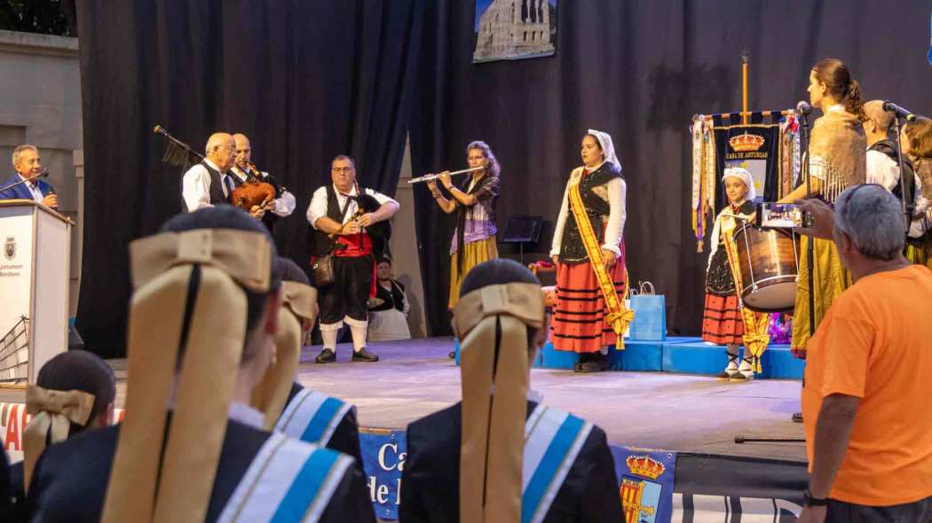El acto finalizo con la interpretación de los himnos de Asturias, Benidorm y Comunitat Valencia que dieron paso al fin de fiesta con actuaciones musicales y ‘culines’ en el Certamen de la Sidra.
