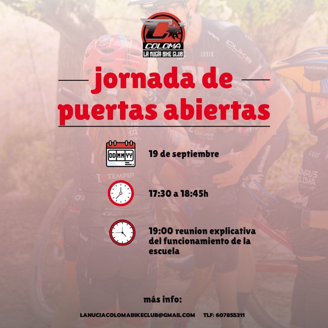 La Escuela de Bicis de Montaña “La Nucía Coloma Bike Club” ha organizado una jornada de puertas abiertas totalmente gratuita para el próximo lunes 19 de septiembre por la tarde, de 17,30 a 18,45 horas. El punto de encuentro será el Centro BTT de La Nucía, junto al Skate Park. El único requisito para participar es llevar bici de montaña y casco y tener entre 6 y 18 años.