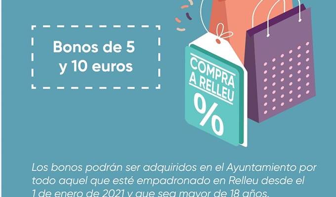 J.M.P. Si eres mayor de 18 años y estás empadronado en Relleu antes del 01/01/2021 podrás pasar por las oficinas municipales a recoger el bono consumo 2022. Te esperamos.