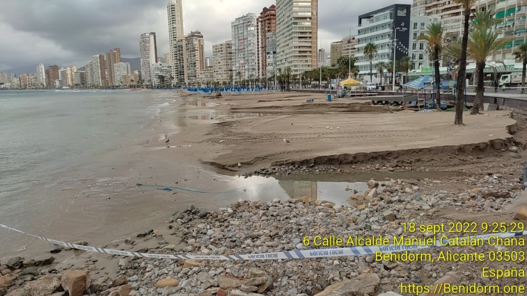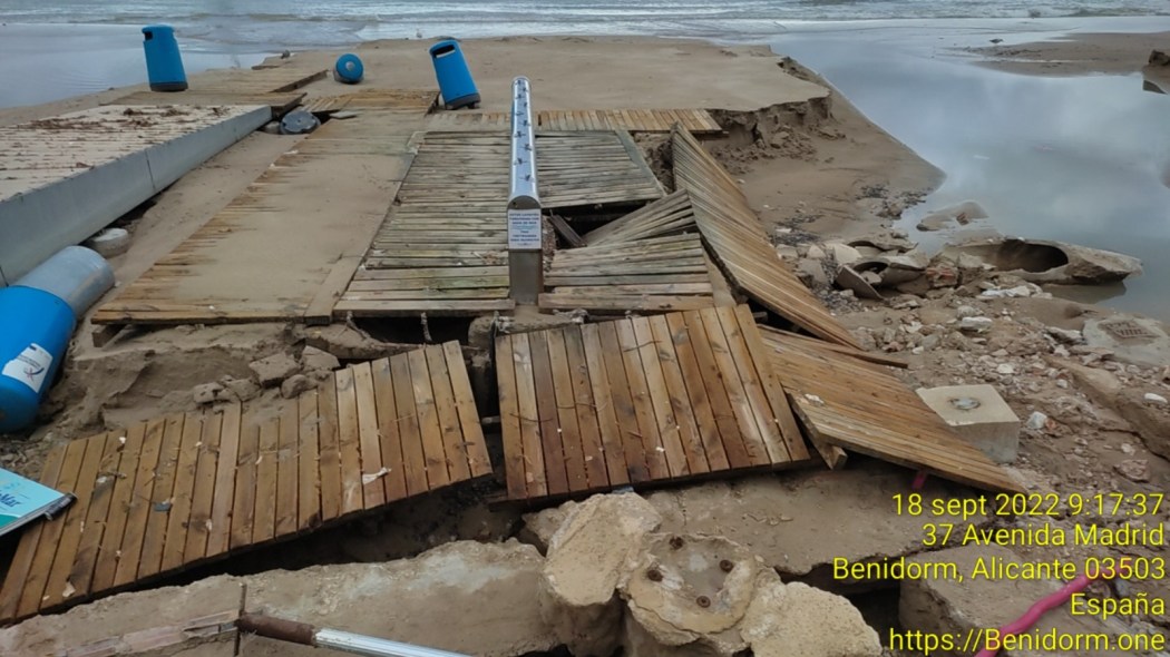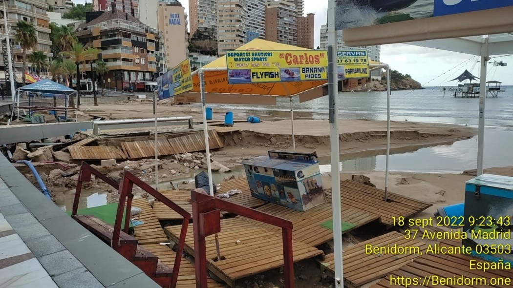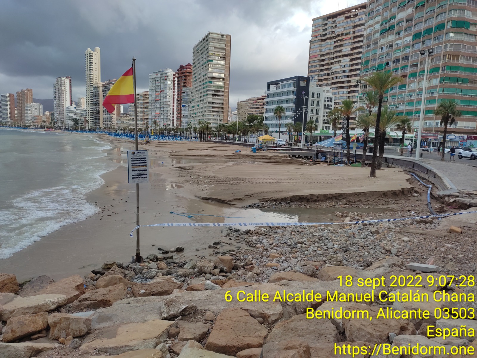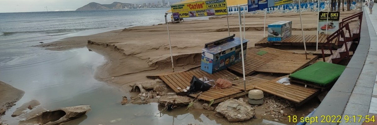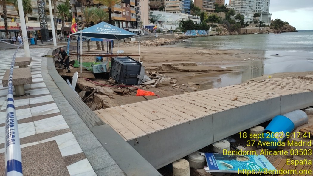 En Benidorm la pasada madrugada sobre las 2 de la mañana, cayo una lluvia que genero grandes destrozos en la ciudad de Benidorm, sobre todo en la playa de levante, según las palabras de Jose Ramon Gonzalez de Zarate, cayeron mas de 91 metros cúbicos de agua por metro cuadrado, pero según manifiesta que los daños provocadas es por falta de la Generalitat de valencia por no ejecutar unas obras de su competencia que llevan previstas desde el 2017.