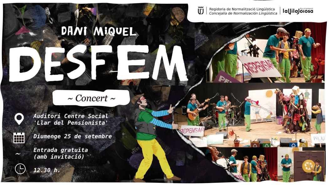 Normalización Lingüística y Fomento y Uso del Valenciano acercan a Dani Miquel y su espectáculo ‘Desfem’ al Auditorio del Centro Social ‘Llar del Pensionista’ como colofón de las jornadas de sensibilización y promoción del uso del valenciano que el departamento ha realizado en el municipio.