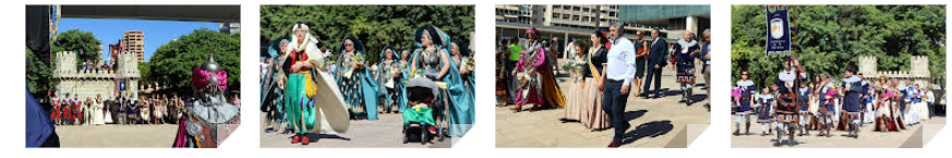 Finalizado el Parlamento de Paz, los integrantes de las ‘filaes’ moras y cristianas han cubierto en romería el recorrido que separa la plaza de SSMM Reyes de España y la iglesia de Sant Jaume, junto al alcalde, Toni Pérez; el concejal de Fiestas, Jesús Carrobles; miembros de la Corporación; las Reinas de les Festes Majors Patronals, Aila Merenciano y Chloe d’Hebbount, y sus cortes de honor; el presidente de la Comissió de Festes Majors Patronals, José Vicente Fuster; y su homólogo de l’Associació de Penyes, Adrián Romero, entre otros.