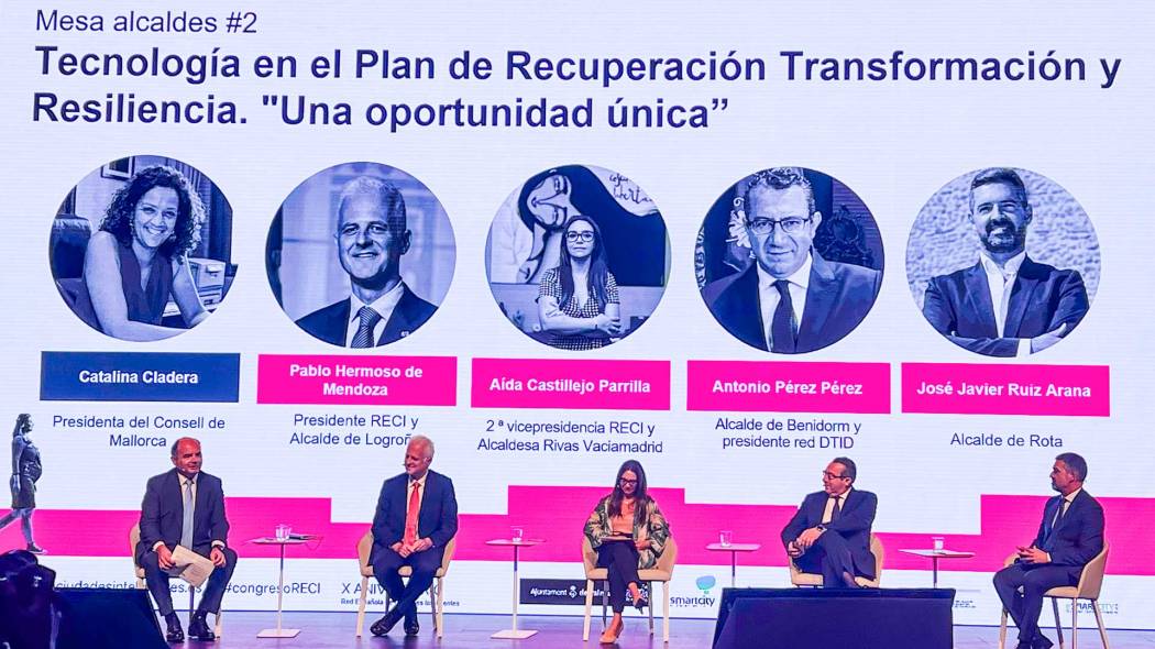El alcalde de Benidorm Toni Pérez ha participado esta mañana en la Mesa de alcaldes que ha analizado la cuestión de la Tecnología en el Plan de Recuperación Transformación y Resiliencia que moderada por Francisco Javier Garcia Vieira, Red.es, ha contado con las aportaciones del presidente de Red Española de Ciudades Inteligentes y alcalde de Logroño Pablo Hermoso de Mendoza; Aída Castillejo, alcaldesa de Rivas Vaciamadrid, que ostenta la 2 ª vicepresidencia de la red y el alcalde de Rota, Cádiz, José Javier Ruiz Arana