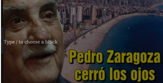 La localidad de Alfas del Pi, a traves de la FUNDACIÓN FRAX, prosigue con los actos programados en honor de PEDRO ZARAGOZA DENTRO DEL AÑO PROGRAMADO EN SU HONOR. Sin decir tiene que este medio de comunicación sigue en desacuerdo que no sea la ciudad de D. PEDRO, Benidorm, la que encabece todos los actos y no una población ajena a la vida y actividad del finado. A la Fundación Frax solo le pido que solicite al impresentable alcalde de Benidorm, TOINI PEREZ, que motivos son, aparte del que todos conocemos de haber sido FALANGISTA, que impide se le haga un MONOLITO, por la primera autoridad, por desgracia, local ,y al mismo tiempo, pedir a los hijos de D. PEDRO su idea sobre este significativo hecho que denota, no solo un desaire hacia la persona de D. PEDRO, sino un un acto carente de toda lógica ya que, espero que así no sea, D. PEDRO no era querido y lo que ahora se celebra, ese año con su nombre, es un cachondeo o pitorreo, salvo nos enteremos los verdaderos motivos, ¡si los hay! de que no se deje hacer ese monolito. L calificación de «impresentable» lo confirma el hecho de mantener una avenida de nuestra villa con el nombre de un político corrupto, un ladrón, un sin vergüenza, EDUARDO ZAPLANA y no deja que se le haga a D.PEDRO ese monolito.