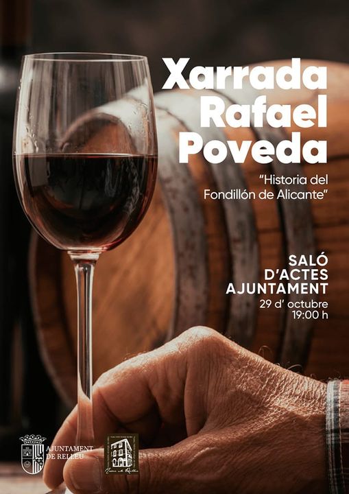 J.M.P. El próximo 29 de octubre a las 19:00 h, tendrá lugar la última actividad que pertenece a “Octubre d’Oficis”, “Historia del Fondillón de Alicante”, una charla que se realizará en el Salón de actos del Ayuntamiento de Relleu y a la cuál podrá asistir todo aquel que quiera. Os agradecemos el recibimiento que han tenido las otras dos actividades.