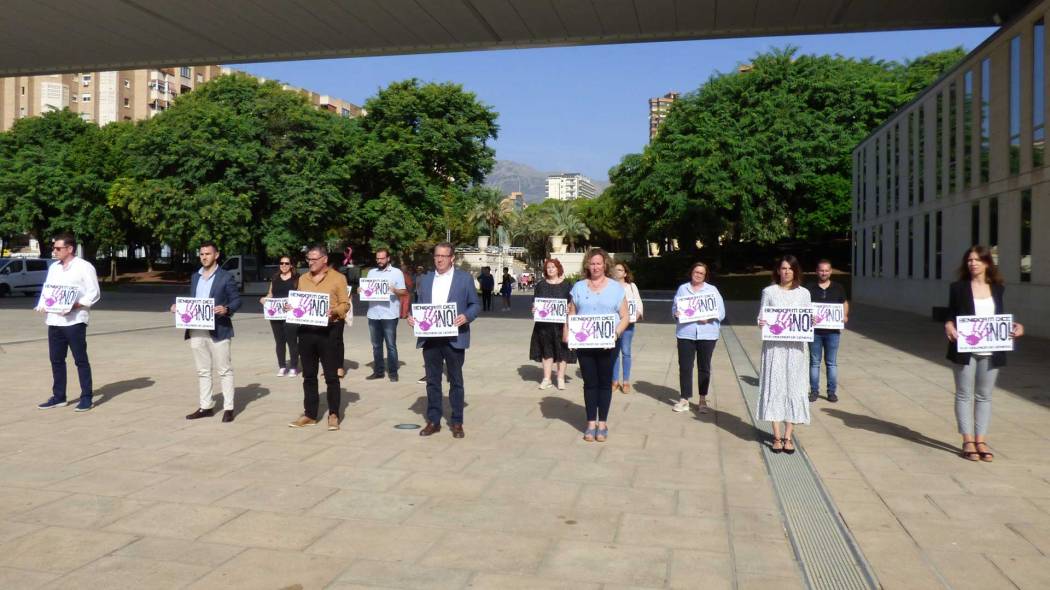 El Ayuntamiento de Benidorm ha convocado este mediodía una concentración silenciosa en la Plaza de SS. MM. Reyes de España para condenar el último crimen confirmado por violencia machista en la provincia de Alicante, ocurrido la madrugada de este domingo en Alcoi. El alcalde, Toni Pérez, y la concejala de Igualdad, Ángela Zaragozí, han encabezado esta concentración en la que se ha recordado a la víctima, una joven de 27 años, que fue degollada por su pareja, quien posteriormente trató de quitarse la vida arrojándose al vacío.