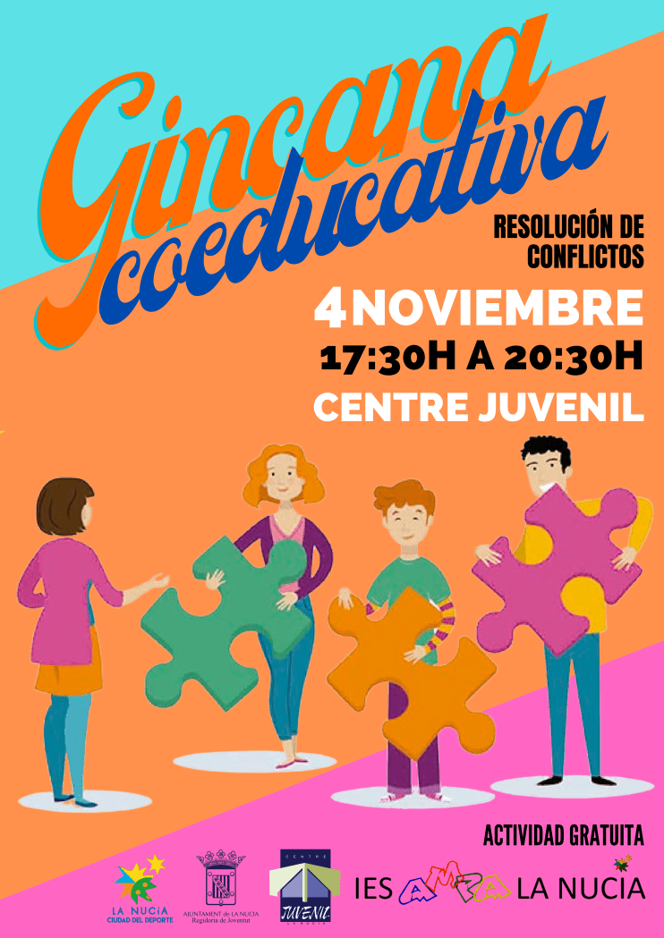 Este viernes 4 de noviembre de 17,30 a 20,30 horas en el Centre Juvenil se celebrará una “Gincana Coeducativa, para la resolución de conflictos en un marco de igualdad”. Es una actividad totalmente enfocada a las familias nucieras. Las inscripciones se deben realizar en el Centre Juvenil de La Nucía o en el teléfono 966897070.
