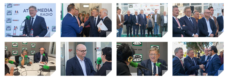 El President de la Generalitat y el alcalde de la Vila Joiosa han sido recibidos a su llegada por Marcelino Fernández, Director de Red de Emisoras; Antonio Dominguez, Director Regional de Onda Cero Comunitat Valenciana; Toni Robles, Director Alicante y Marina Baixa; y todo el elenco de periodistas y trabajadores que conforman el equipo de radio de Onda Cero Marina Baixa. Con esta cita, Atresmedia Radio ha estrenado este viernes su nuevo centro de producción en la Vila Joiosa, que emitirá para la comarca de la Marina Baixa las programaciones de Onda Cero y Europa FM.