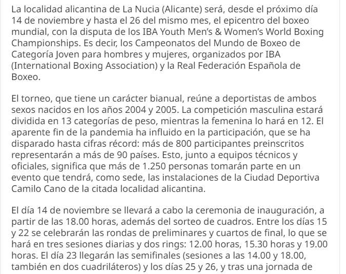 LA NUCIA SE PREPARA PARA LOS CASMPEONATOS DEL MUNDO DE BOXEO DE CATEGORIA JOVEN