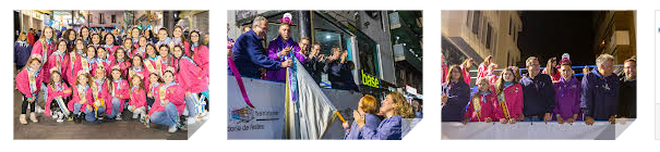 Las peñas desfilaron al ritmo de reggaetón, con sus coloridos blusones, una a una, ante la tribuna donde, como dicta la tradición, se les imponía el correspondiente corbatín conmemorativo en sus estandartes o banderines. Tras el desfile, cada colectivo marchaba hacia su local donde continuó la fiesta hasta entrada la madrugada.