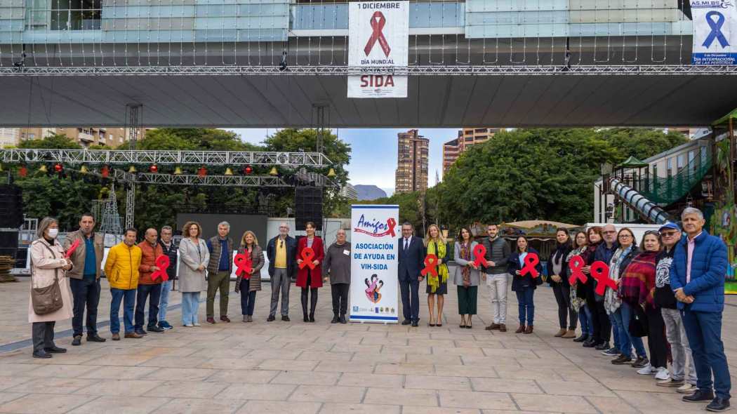 Un año más, Benidorm se suma a la conmemoración del Día Mundial del Sida, que en este 2022 se celebra bajo el lema ‘Igualdad Ya’. Desde esta mañana, una pancarta conmemorativa visibiliza esta efeméride. El alcalde, Toni Pérez; la concejal de Sanidad, Mónica Gómez; miembros de la Corporación; e integrantes de la asociación Amigos Benidorm que preside Arnulfo González, se han concentrado en la Plaza SSMM Reyes de España para apoyar a las personas que viven con el VIH y recordar a las que han fallecido por enfermedades relacionadas con el sida.