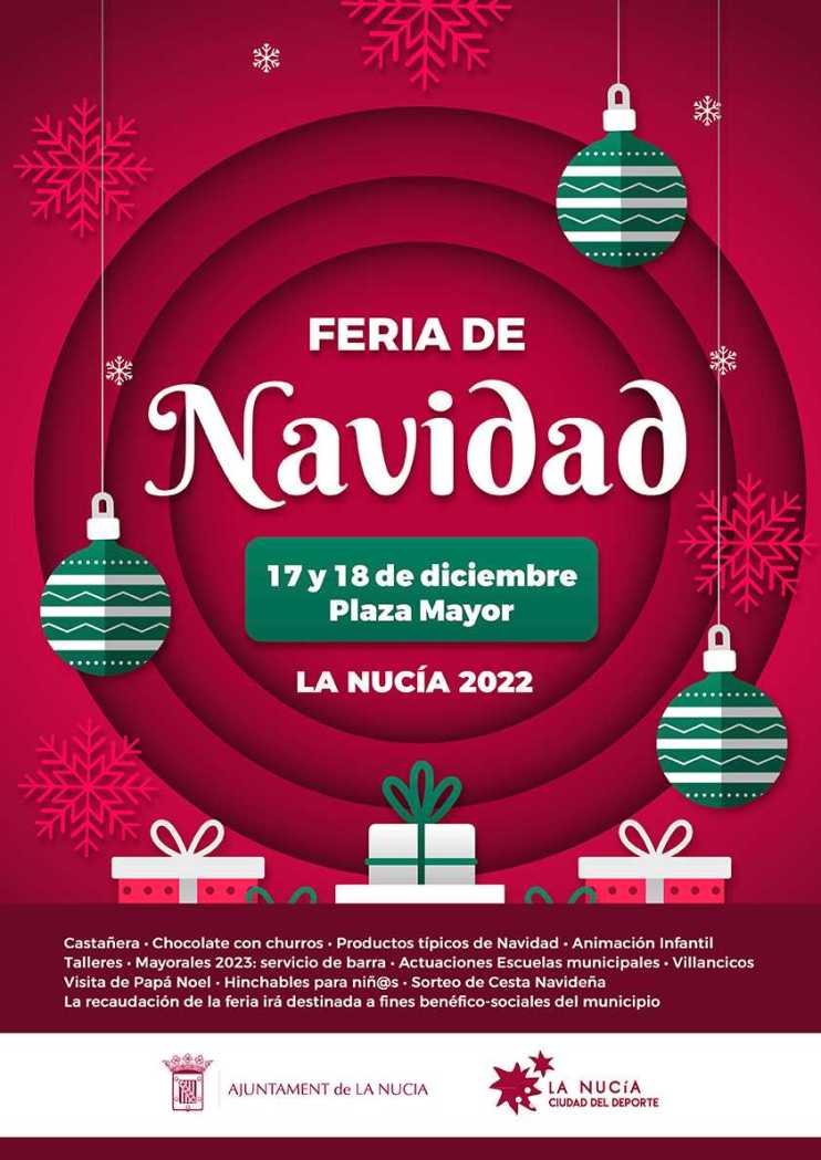 La XI Feria Solidaria de Navidad de La Nucía arranca mañana sábado a las 11 horas en la plaça Major. La Feria contará con la visita de Papá Noel, actuaciones de diferentes escuelas de baile y musicales y deportivas de La Nucía. Durante dos días se podrán comprar en los puestos solidarios, artículos relacionados con la navidad, cuya recaudación irá destinado a fines sociales. La entrada será libre y gratuita y estará abierta al público durante las dos intensas jornadas.