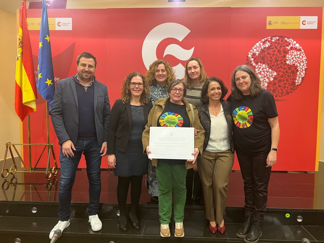 El Instituto de La Nucía fue galardonado con el “XII Premio Nacional de Educación para el Desarrollo ‘Vicente Ferrer’” de la Agencia Española de Cooperación (AECID), adscrita al Ministerio de Asuntos Exteriores, Unión Europea y Cooperación. Por su proyecto “CultiVerso de SembriPensantes, tejiendo conciencia hacia una educación para la justicia global”, realizado de forma conjunta con el Instituto Pintor Rafael Requena de Caudete. El pasado viernes 16 de diciembre recogieron el premio en Madrid en la sede de la AECID. Al acto de entrega del premio acudieron Feli González, coordinadora de Igualdad IES, Viqui Ferrer y Marisa Berenguer, profesoras de 1º ESO e impulsoras del proyecto, Marta López, asesora CEFIRE Alicante, Empar Gadea, directora del Instituto La Nucía y Sergio Villalba, concejal de Educación