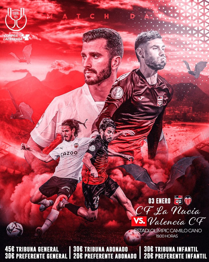 En el primer partido del año el Club de Fútbol La Nucía jugará esta eliminatoria del torneo del KO ante el Valencia Club de Futbol, uno de los equipos más poderosos de España.