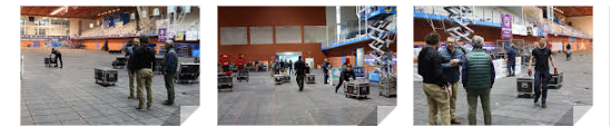 De momento ya se ha instalado a lo largo del pabellón el suelo especial para proteger la tarima y mañana empezará el montaje de los escenarios. Hoy también se inicia el montaje de la iluminación y se han acotado ya algunas zonas y puesto en marcha las restricciones de acceso para vehículos.