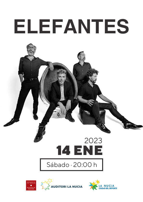 El grupo de pop-rock “Elefantes” actuará el próximo sábado 14 de enero a las 20 horas en l’Auditori de La Nucia. Concierto incluido dentro de la gira de presentación de su nuevo disco “Trozos de Papel/Cosas Raras”. Las entradas se pueden adquirir en las taquillas de l’Auditori y en la plataforma entradas.com