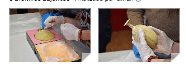 *Fotografías: desembalaje y comprobación del estado de recepción de la cantimplora egipcia en el laboratorio de restauración de Vilamuseu, e imagen frontal de la pieza.
